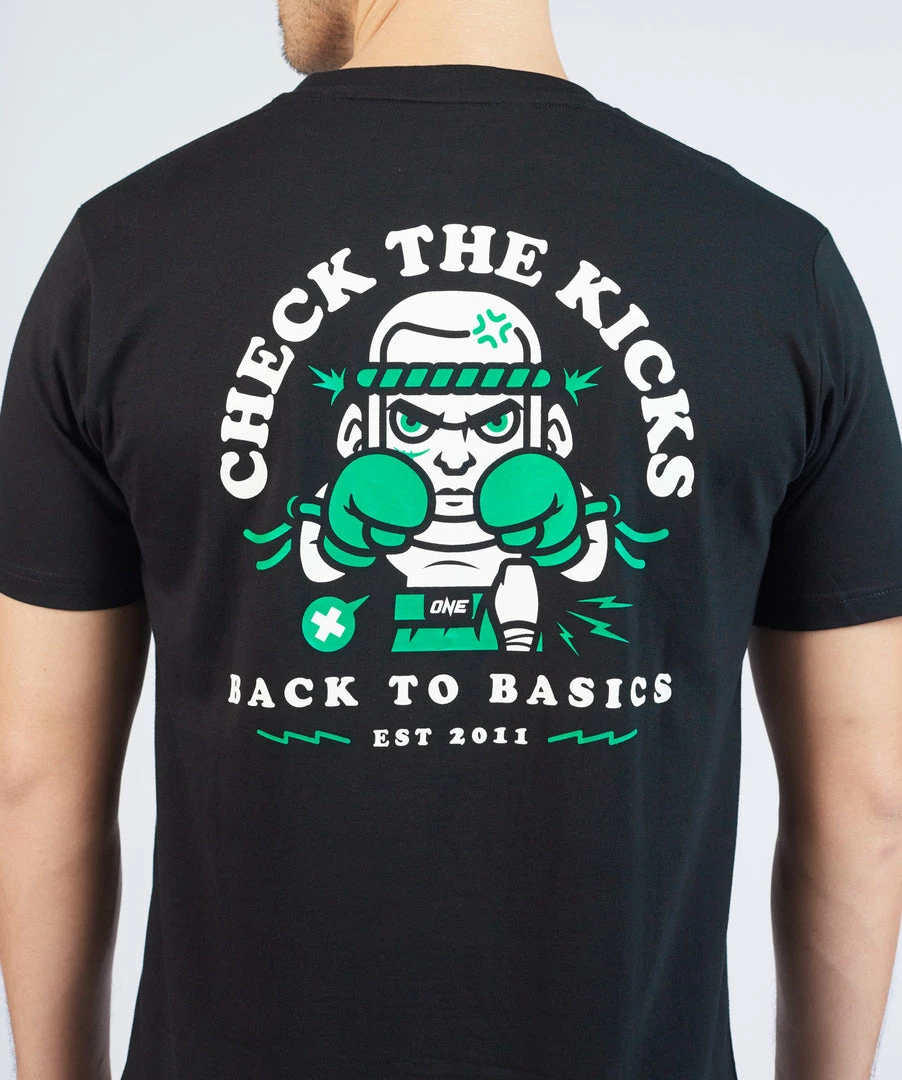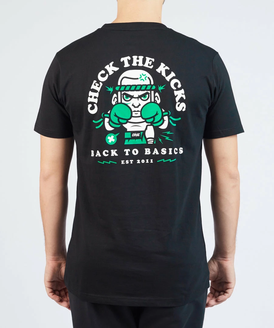Go back to the basics with the Check The Kicks Tee. Featuring a cartoon illustration of a “Nak Muay” on the back, this tee is a must-have for Muay Thai and Kickboxing fans and practitioners alike.