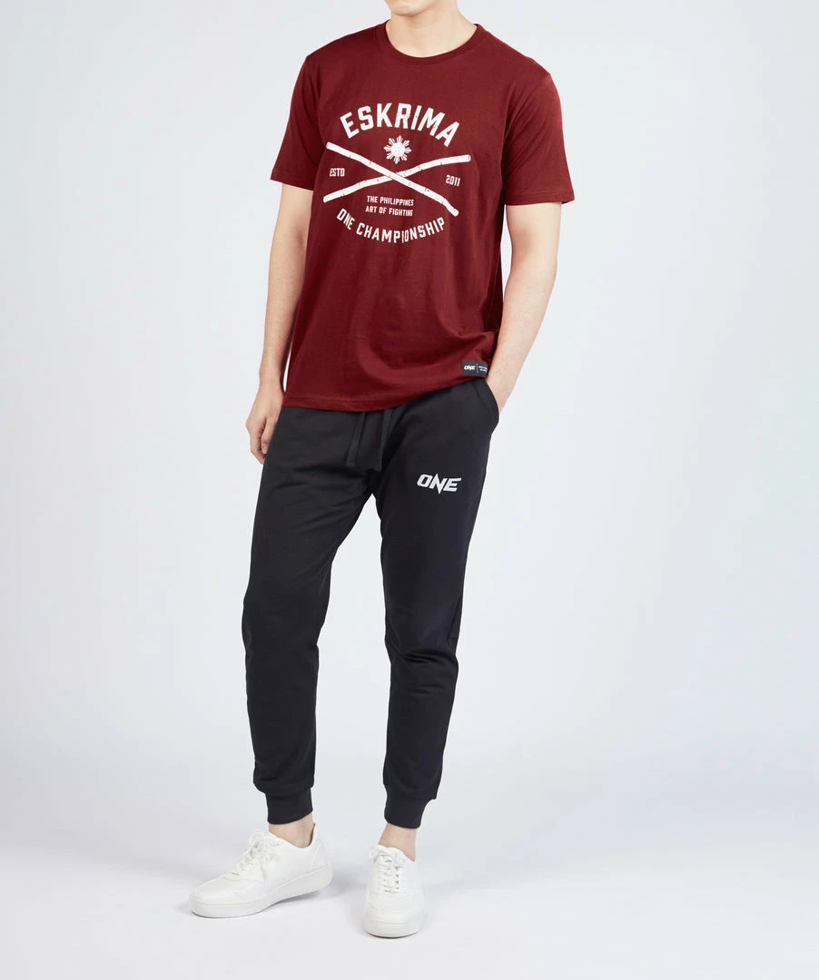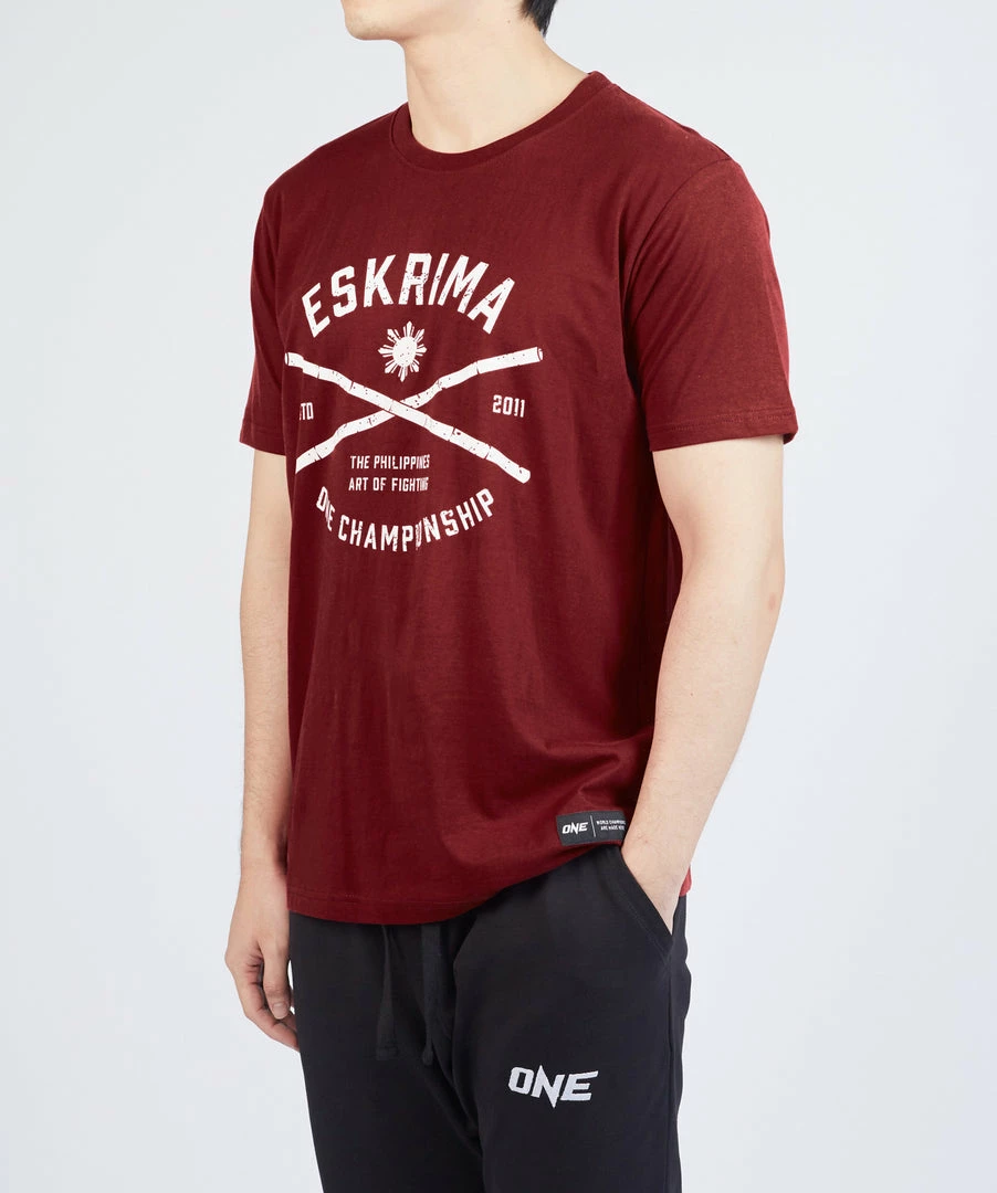 The Simbolo Collection by ONE celebrates Filipino culture and history. This maroon tee features Eskrima, the national martial art of the Philippines, screen printed on the front. The tee is finished with our multilingual “The Home of Martial Arts” woven necktape and has a screened printed inner neck label for added comfort.