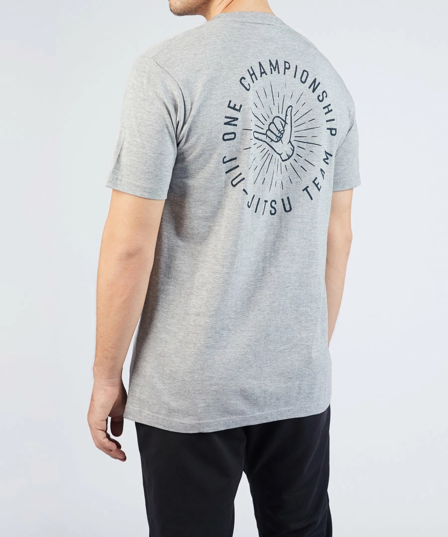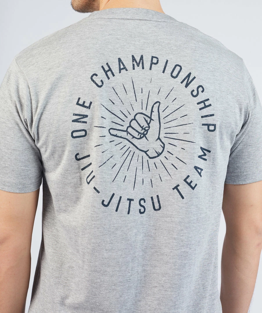 The Jiu Jitsu Team Tee features a classic vintage design for lovers and practitioners of jiu jitsu. The Jiu Jitsu Team Tee showcases the shaka/”hang loose” sign popular in the sport – the design is applied on the left chest, as well as on the back of the shirt on a classic heather gray fabric. The t-shirt is finished with a multilingual “The Home of Martial Arts” woven necktape and has a screen printed inner neck label for added comfort.