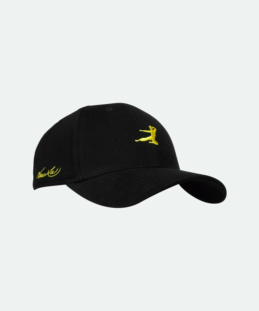 Celebrate 80 years of Bruce Lee with our Bruce Lee Flying Man Baseball Cap. Featuring Bruce Lee’s signature as well as a silhouette of his flying kick in bright yellow against a classic black baseball cap. Part of our ONE x Bruce Lee limited edition collection.