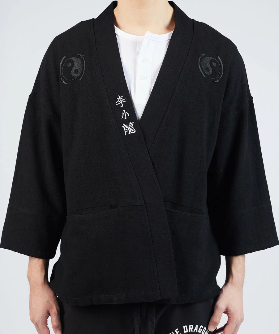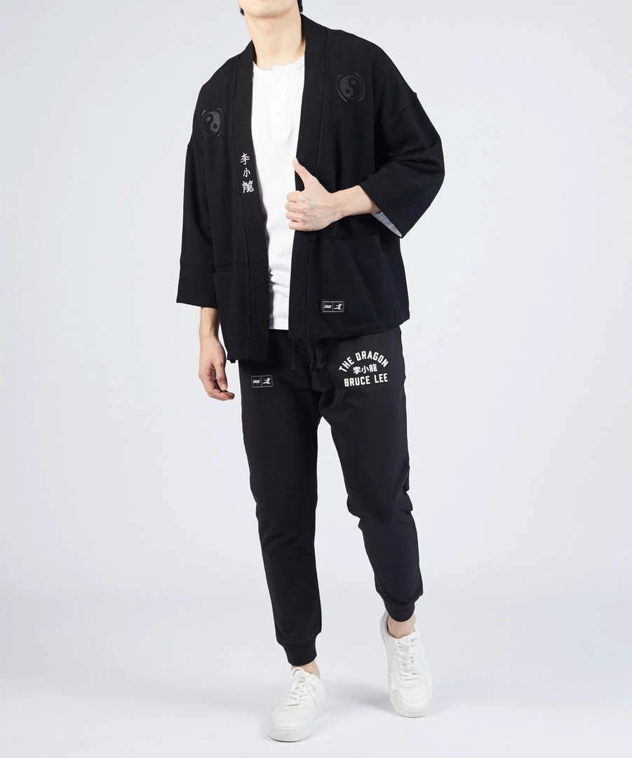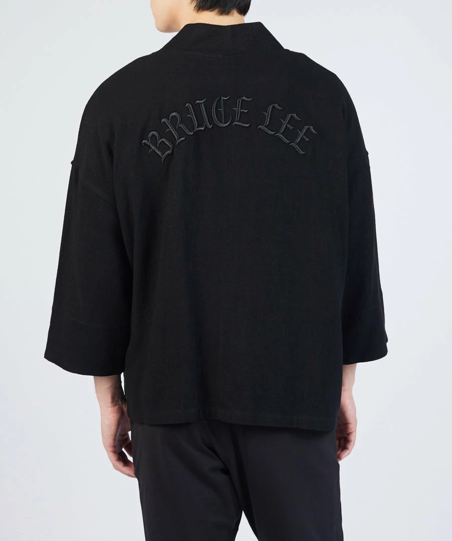 Bruce Lee’s traditional kung fu uniform meets modern streetwear with the Bruce Lee Kimono Jacket. With Bruce’s name (in both Chinese and English) and ‘Taijitu’ symbols subtly embroidered across the jacket, this piece is a must-have for every Bruce Lee fan.