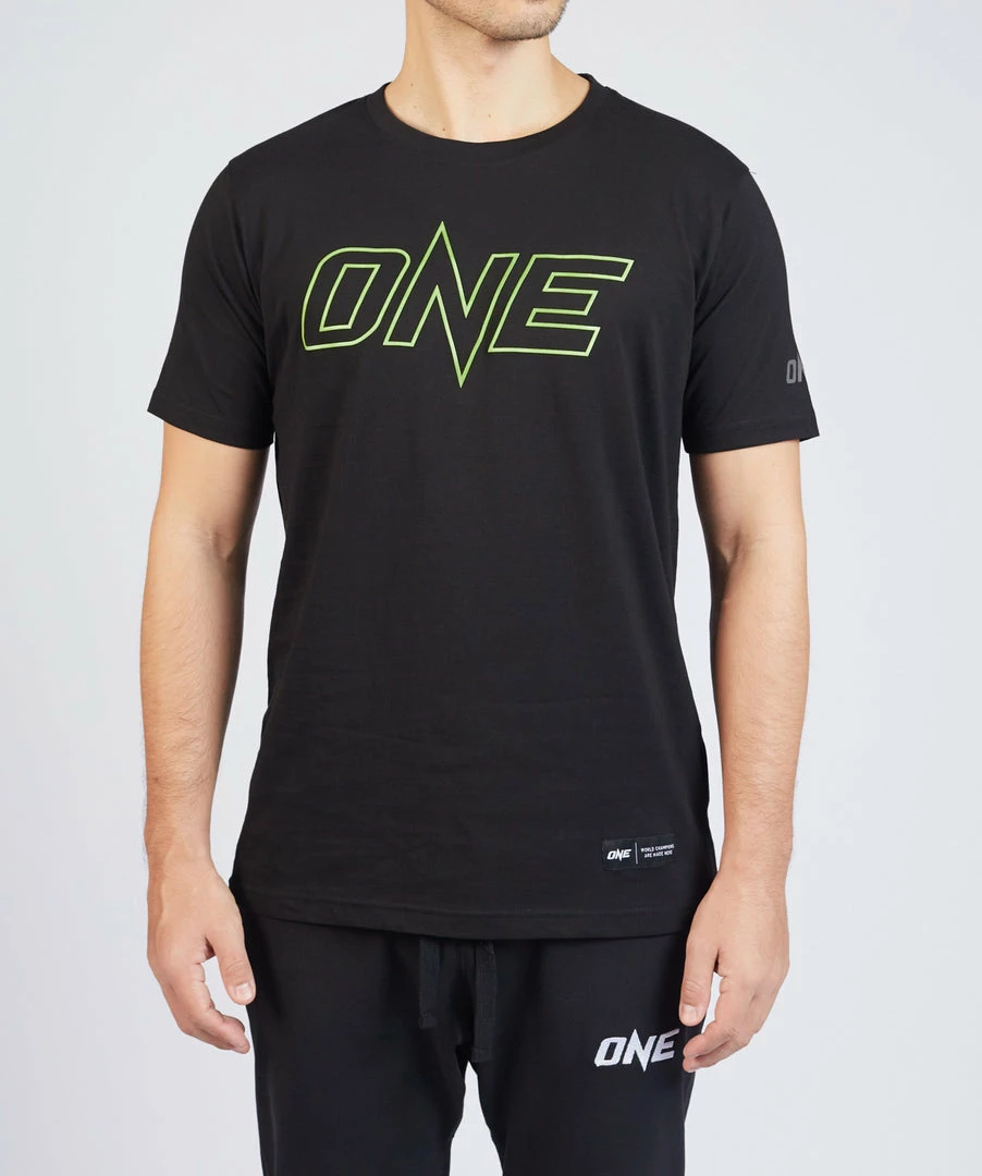 Featuring a reinvented application of the ONE logo, the ONE Neon Stroke Logo Tee is a standard unisex fit cotton t-shirt with the ONE logo outlined in high density neon green print. It is finished with our multilingual “The Home of Martial Arts” woven necktape and has a screened printed inner neck label for added comfort.
