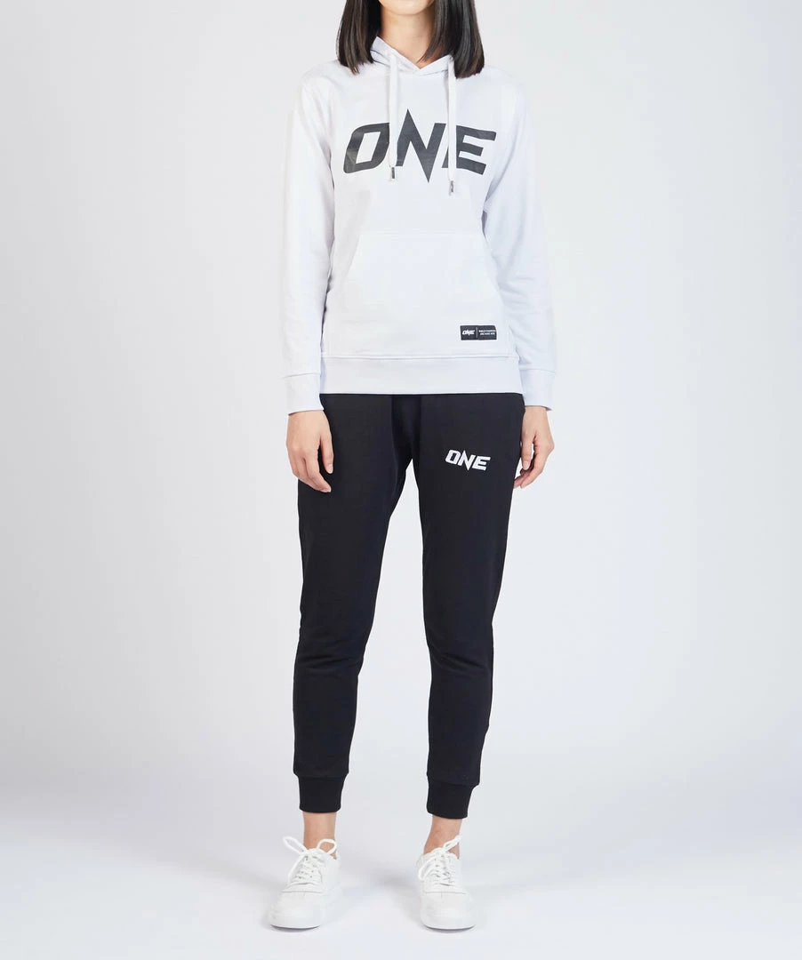 A new colorway addition to the ONE Essentials collection, the ONE White Logo Pullover Hoodie features the ONE logo on a comfortable pullover hooded sweatshirt in white. The hoodie has a classic feel with a pouch pocket and a rib knit at the cuffs and hem.