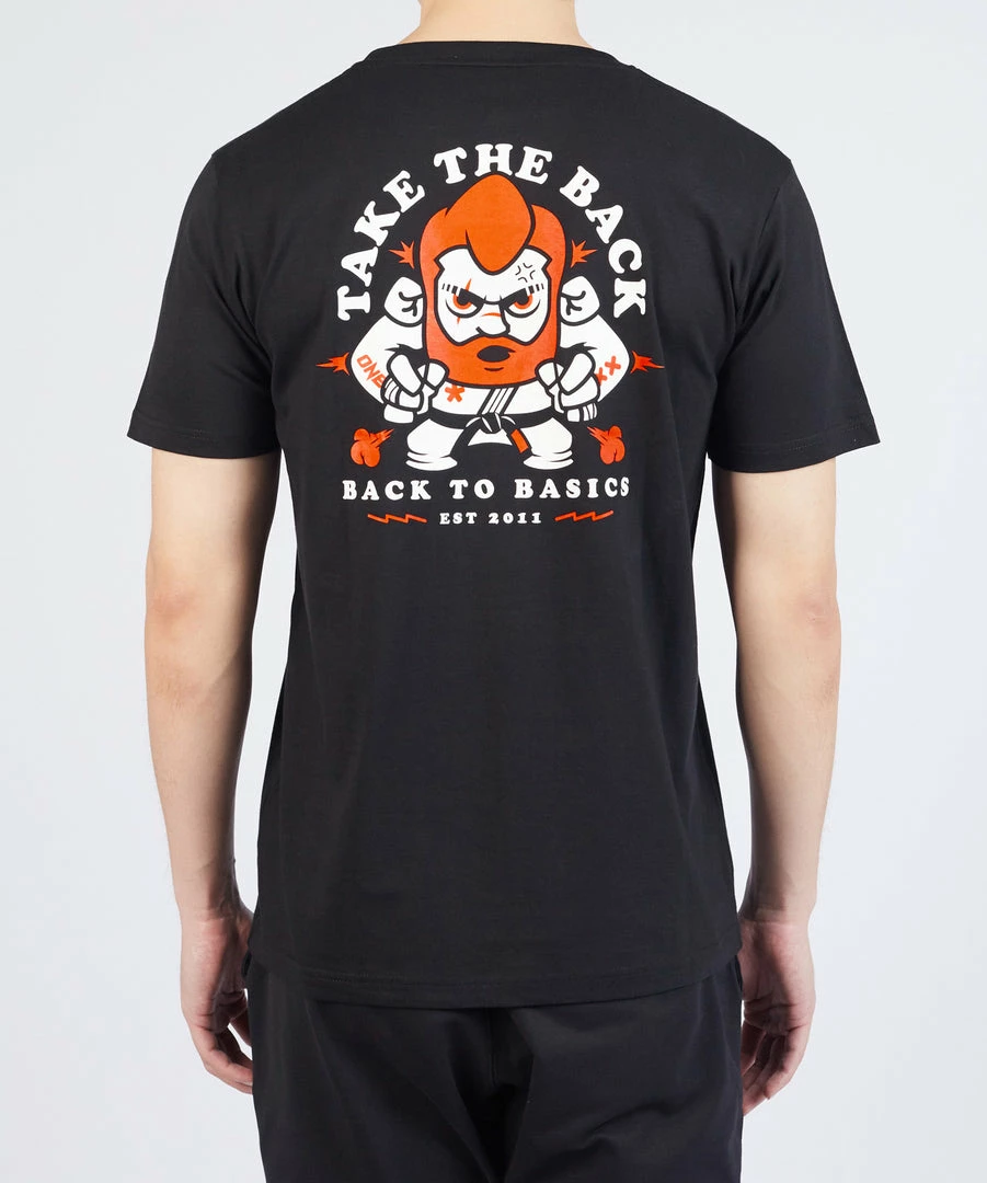 Go back to the basics with the Take The Back Tee. Featuring a cartoon illustration of a Grappler on the back, this tee is a must-have for Grappling fans and practitioners alike.