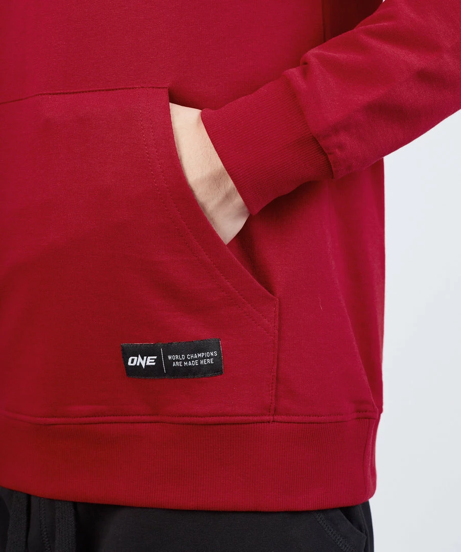 Part of the Pilipinas Kong Mahal collection, show that you are Team Philippines in this classic red hoodie. The Team Philippines Hoodie features the Philippines flag embroidered on the left chest together with the ONE logo which is screen printed front and center of the chest. Together with heritage-inspired typography on the back, this is a must for any Philippines fan. The hoodie has a classic feel with a pouch pocket and a rib knit at the cuffs and hem.
