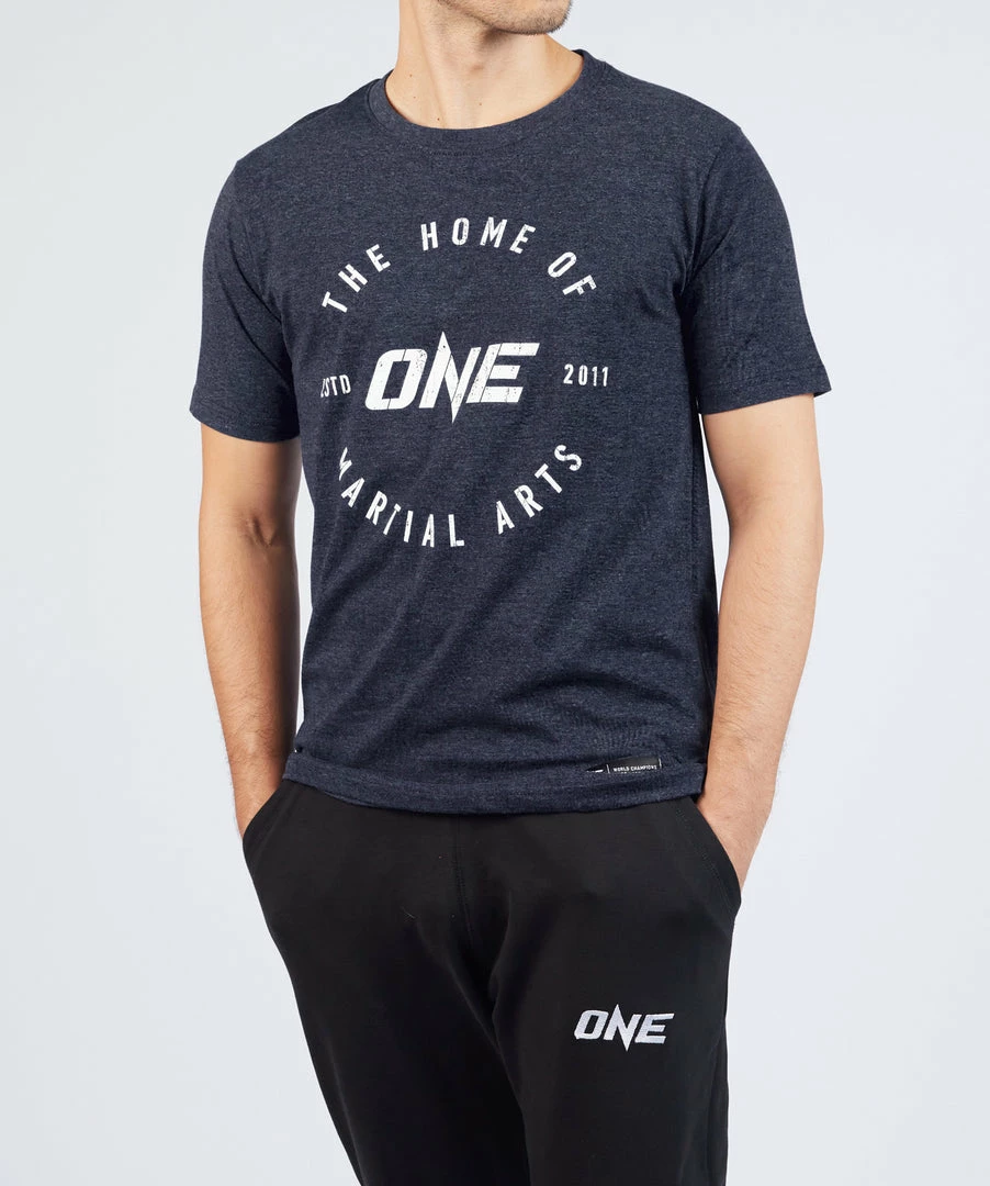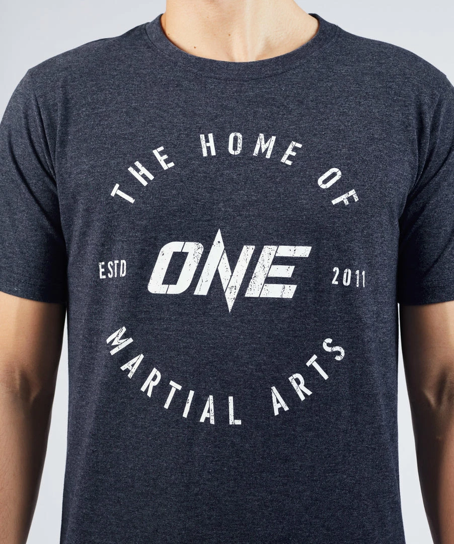 The Home of Martial Arts Vintage Tee features a classic vintage design that showcases the legacy of ONE Championship as the Home of Martial Arts. The heather blue fabric gives the t-shirt a one-off lived-in look, and is finished with a multilingual “The Home of Martial Arts” woven necktape and has a screen printed inner neck label for added comfort.