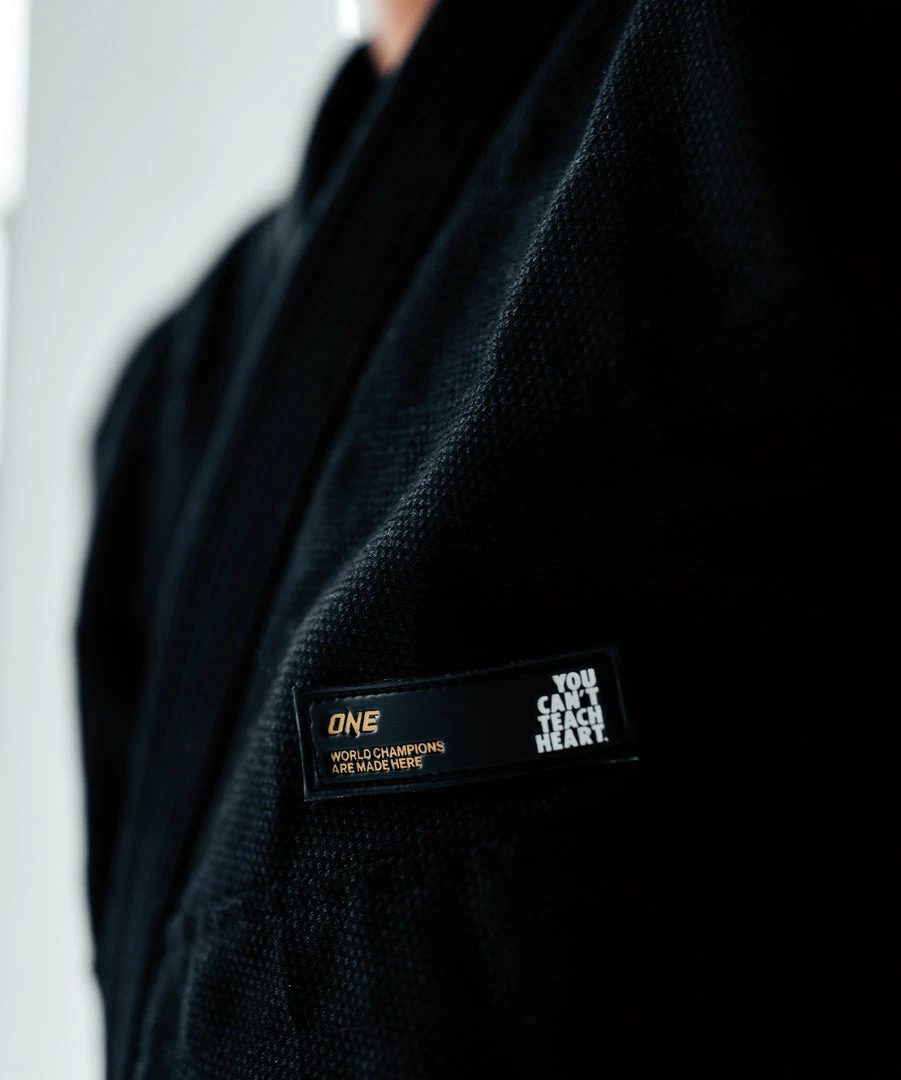 The ONE x HYPERFLY Hyperlyte Gi is a lightweight, comp-legal gi ideal for warm climates. The clean aesthetic features an emblem of ONE’s values, as well as HYPERFLY’s mantra, “You Can’t Teach Heart”.
